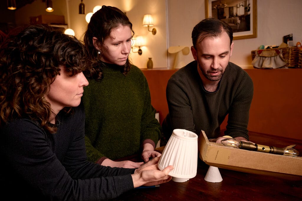 Fosbery Studio is a small team of designers, craftspeople and engineers, making contemporary decorative lighting here in our studio workshop in Kent.